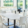 Graceful and modern, the Crema is available with a contemporary high-back or low-back design. It is available in black or white laminate or a natural maple finish.