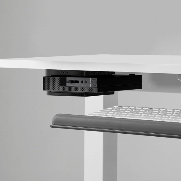 The Thin Client Holder is designed to provide convenient access by easily mounting underneath the worksurface. A simple solution that accommodates most thin clients 1” – 2” and up to 5 lbs.