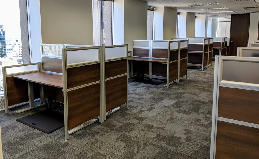 Canadian federal government installation featuring furniture from Artopex and monitor arms from Tayco.