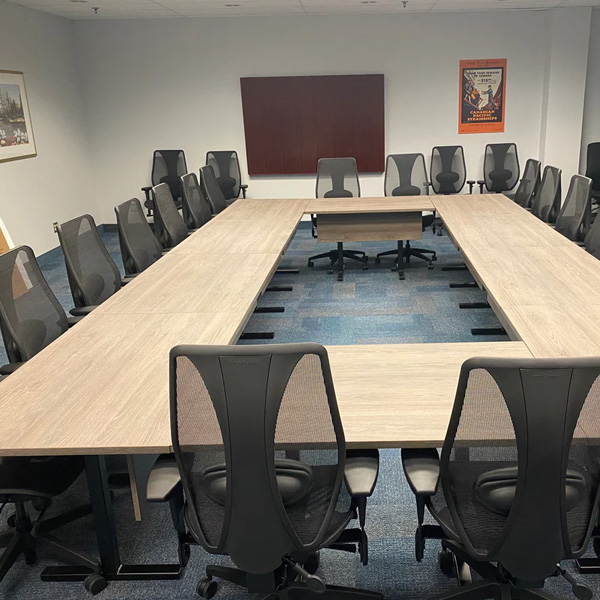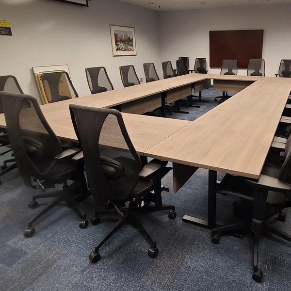 Modular tables by Fluid Concepts with ergoCentric All Mesh Boardroom chairs.