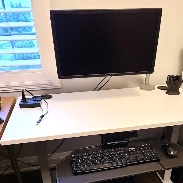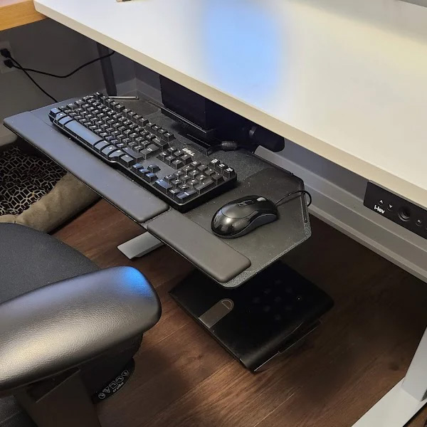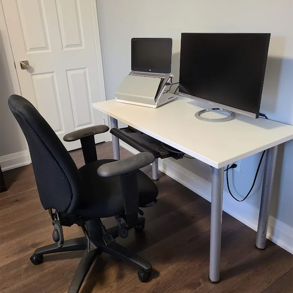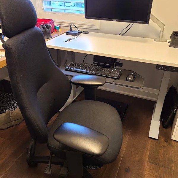 Fluid Concept height adjustable suite, Humanscale monitor arm and keyboard tray, and ergoCentric chair.